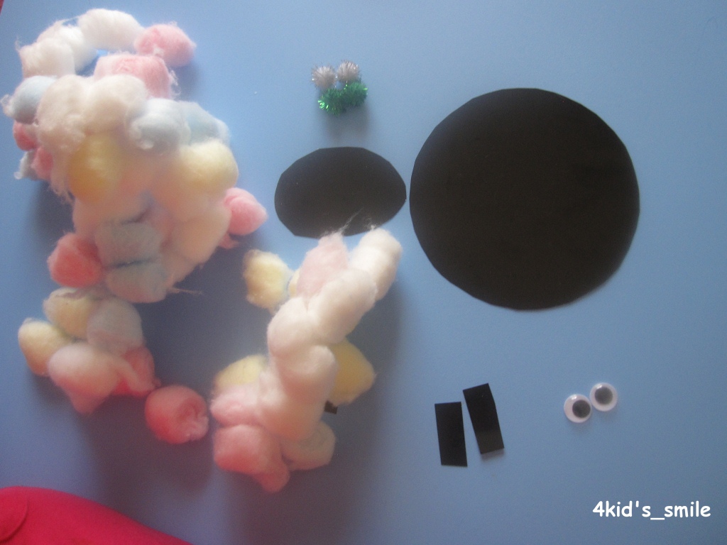 In this craft activity you can also repeat names of shapes and colours what we actually did with Karolina during our work.